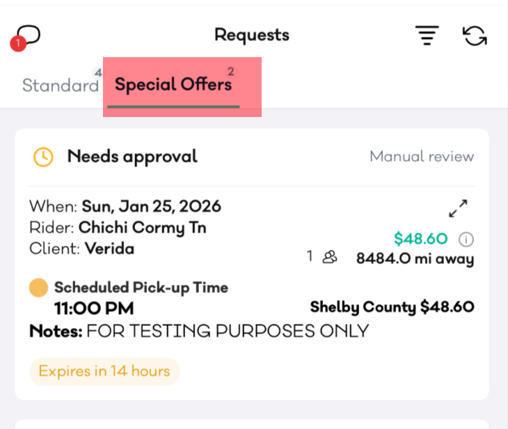 A new Special Offers tab in Requests